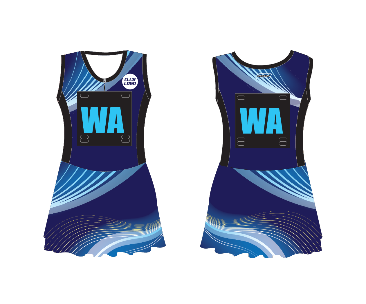 Bodysuit Fully sublimated, free design includes club logo and any embellishment. Velcro on front and back. Material 100% polyester lycra. Attached knicker and zip. Sizing, junior through to senior.